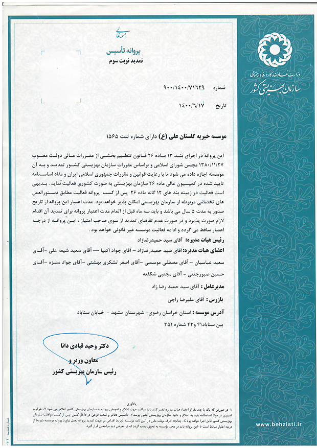 موسسه خیریه گلستان علی(ع)، بزرگترین مرکز نگهداری کودکان بی سرپرست و بدسرپرست کشور و تحت نظارت سازمان بهزیستی با شماره ثبت1565است .این موسسه ضمن نگهداری ایتام در12 خوابگاه،از شما مردم شریف ایران کمک جهت تامین لباس زمستانی ایتام میطلبد.